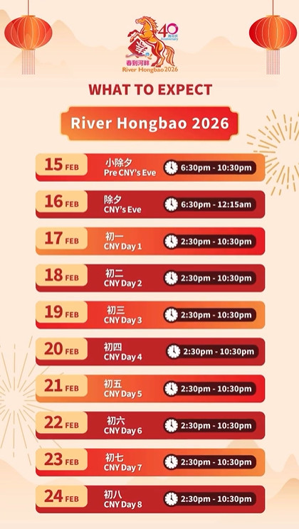 Start your festive adventure at River Hongbao 2026! Marvel at lanterns,